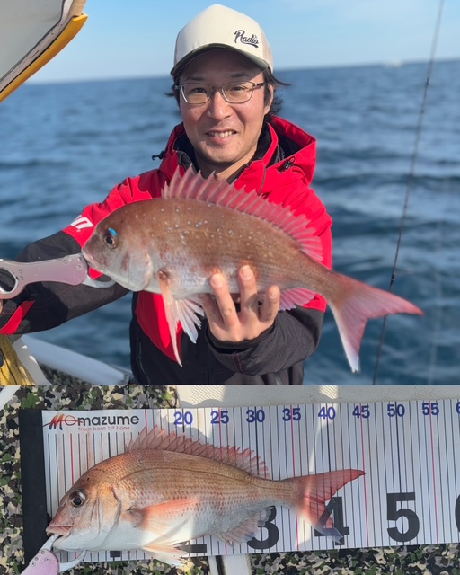 結論からリベンジ案件です。久しぶりの出船出来たのは良かったのですが・・・😢😢沈黙時間が長く最後のポイントで何とか真鯛の顔が見れて良かったです。