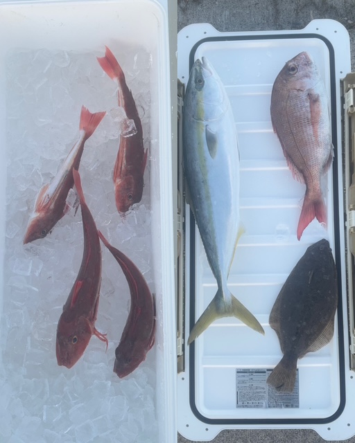 11月16日日曜日4名様で真鯛五目SLJ7:00出船~14:30沖上りの釣果はマダイ1枚、ワラサ1本、ホウボウキープ4匹リリース5匹、カナガシラリリース10匹、サバ・ショウサイフグリリース10匹の六目でした。
